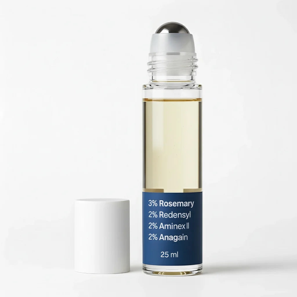 Notre sérum contient du Romarin pour la circulation, du Redensyl pour réactiver les cellules souches, de l'Aminexil pour ancrer les cheveux et de l'Anagain pour prolonger le cycle de vie du cheveu. Cette synergie d'actifs est votre secret pour une chevelure revitalisée et plus dense.